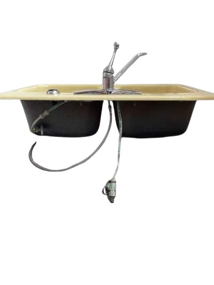 Vintage Yellow Enameled Cast Iron Kitchen Sink
